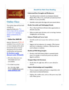 • You will learn how to identify your dominant elements (Metal, Water, Wood, Fire, and Earth) and understand their influence on your personality.
